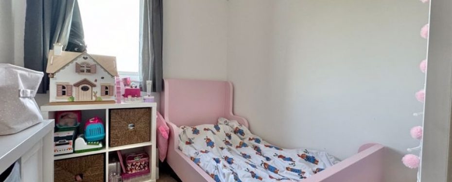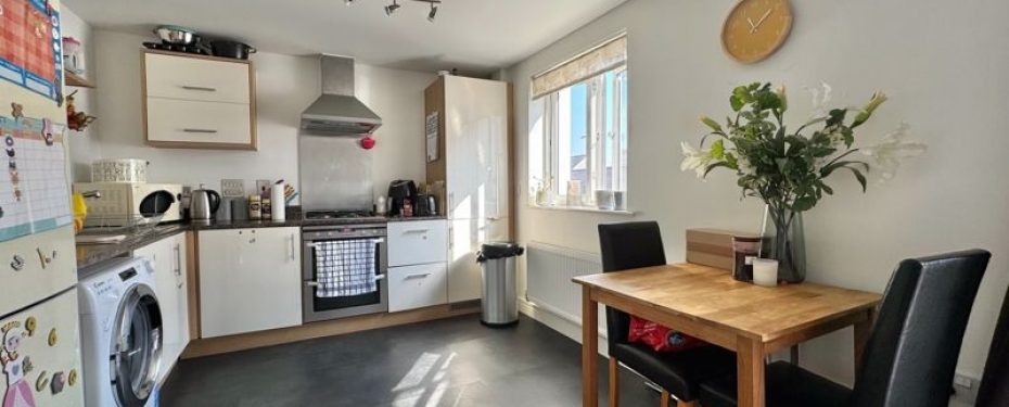 There is space for a fridge/freezer & washing machine. Two bedrooms with sliding fitted wardrobes in the master bedroom. Off the hallway is the modern fitted bathroom with shower over bath & storage/airing cupboard